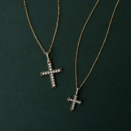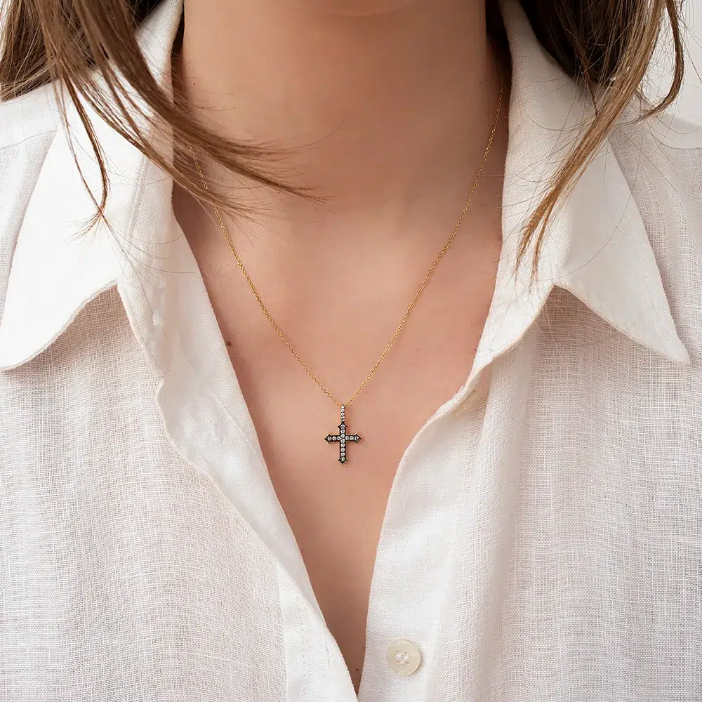 O Pingente Cruz com Diamantes em Ouro Amarelo 18K apresenta um símbolo clássico de fé e proteção através do olhar Mingotti. A cruz preserva sua força simbólica em uma leitura discreta e atemporal. O desenho valoriza proporções, acabamento e cravação e acompanha diferentes momentos com sobriedade e significado.